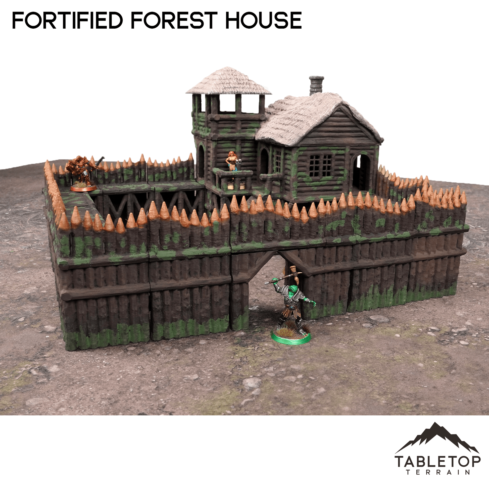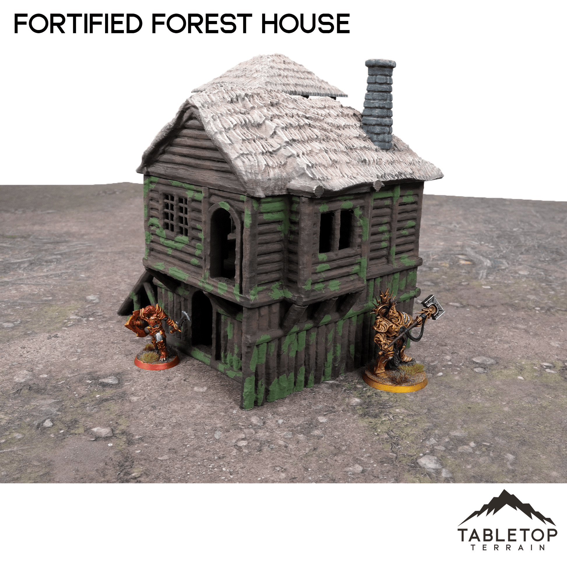 The Fortified Forest House is a small quaint three storey forest house with removable roofs and articulating doors. It's surrounded by battlements with a gate. The House has a tower large enough to place a lookout spotting the enemy invaders. The House is available in 32mm, 28mm, 20mm, and 15mm scales.