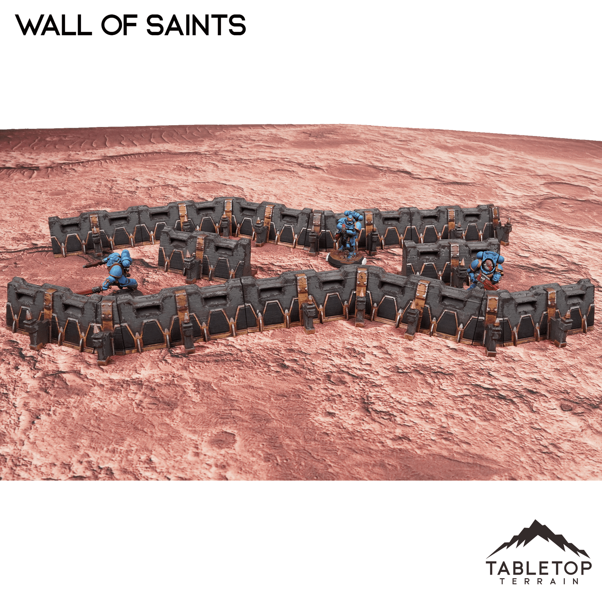 This is full collection of Wall of Saints, with all sets included as a single discounted purchase. This includes the Artillery, Defense Walls, Double Tower, and Hybrid Bunker. Each piece of this collection is designed to be mix and match, with the walls all connecting in any way you'd prefer. Setup whatever layout you see fit, and create your own massive fortress on the field! The Wall of Saints set is designed for sci-fi wargames, but can be used with any system.