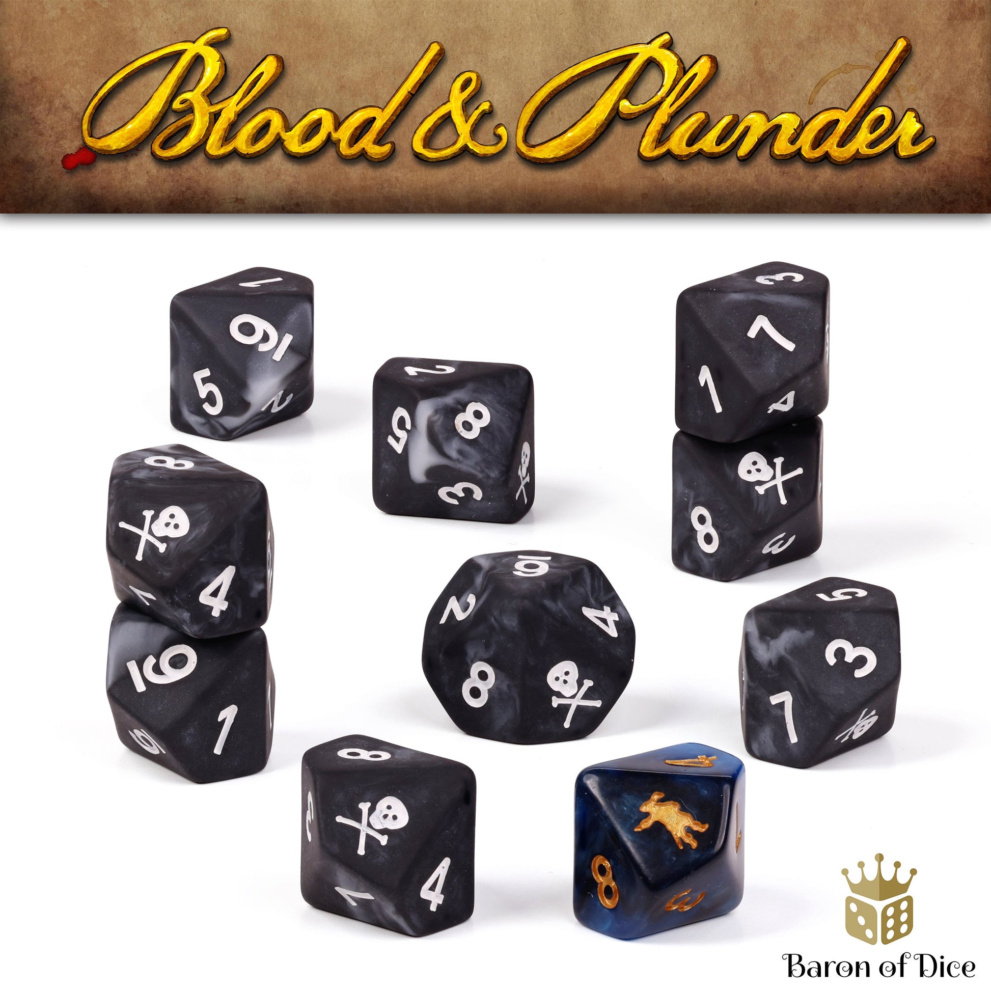 Our officially licensed Blood & Plunder dice set is ready to unleash a full barrage! Each set contains x9 country themed D10 dice along with a single unique oceanic colored commander D10; creating a full ten D10 dice inside a reusable metal tin.