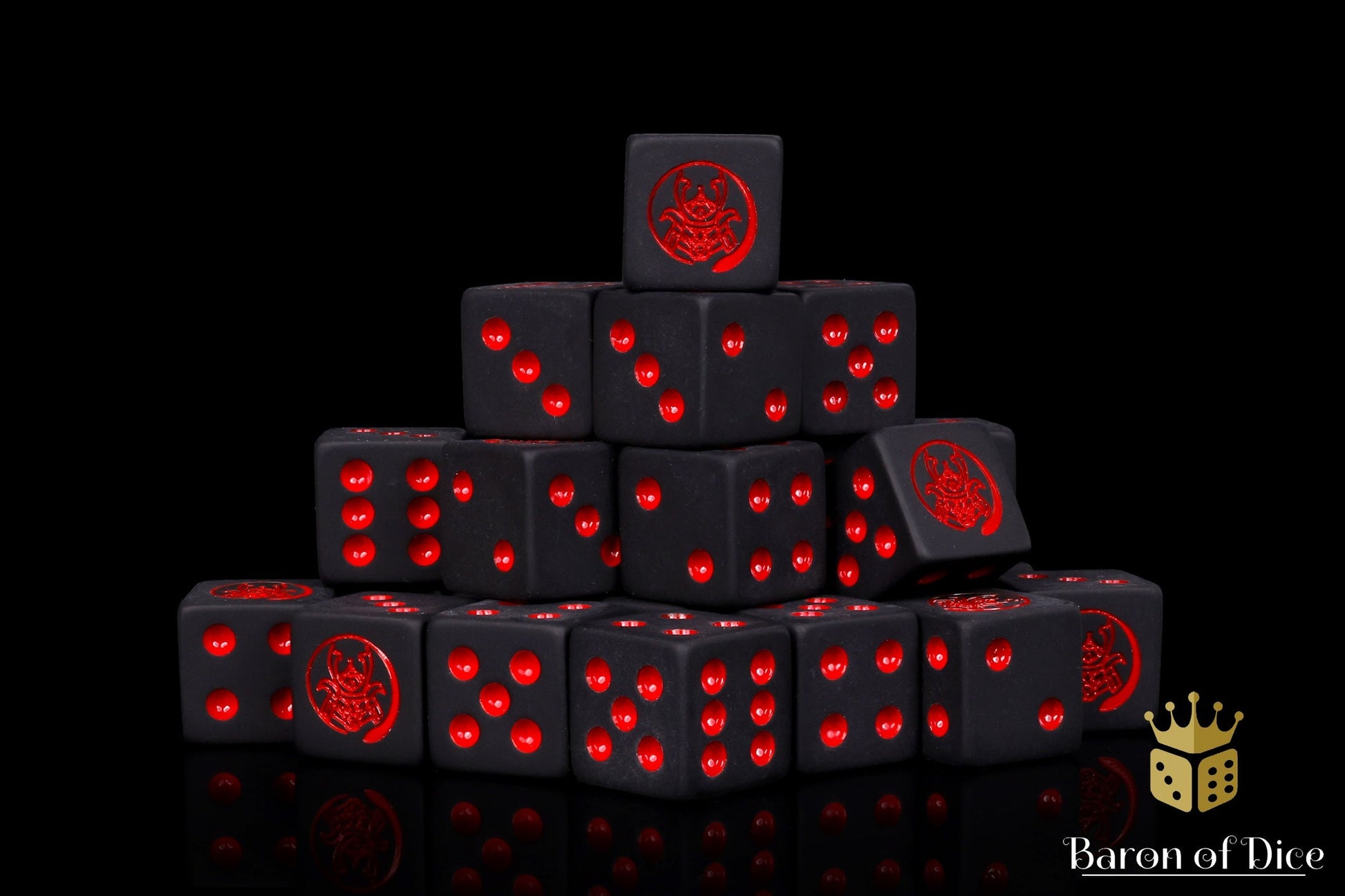 Millennia upon millennia these forces have been accumulating... their dice are finally here! These contain a matte black base and inlaid with a bloody red; resin 16mm dice.  The symbols are on the ONE side. Yes, the ONE side. These dice come in round corner or square corner; choose wisely!