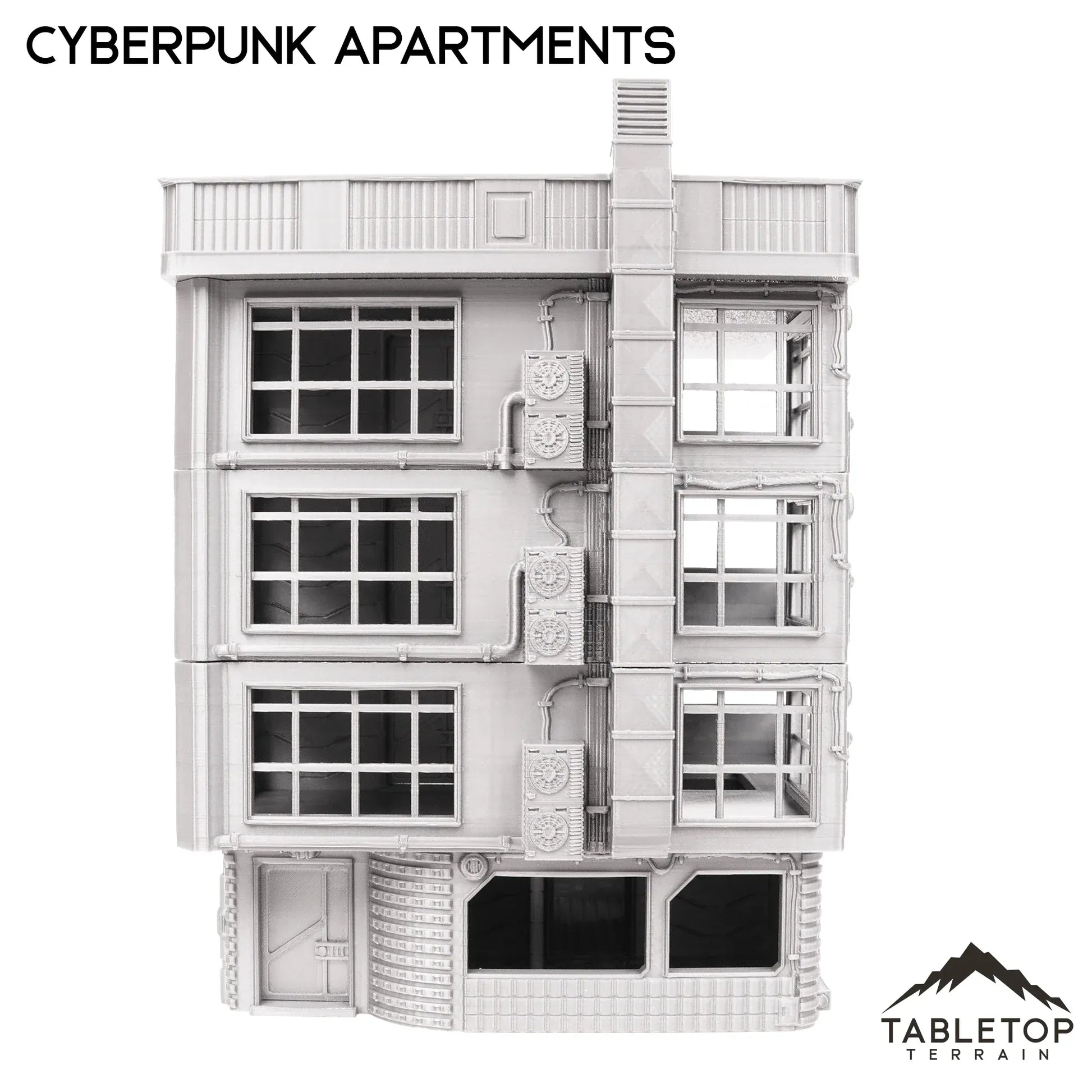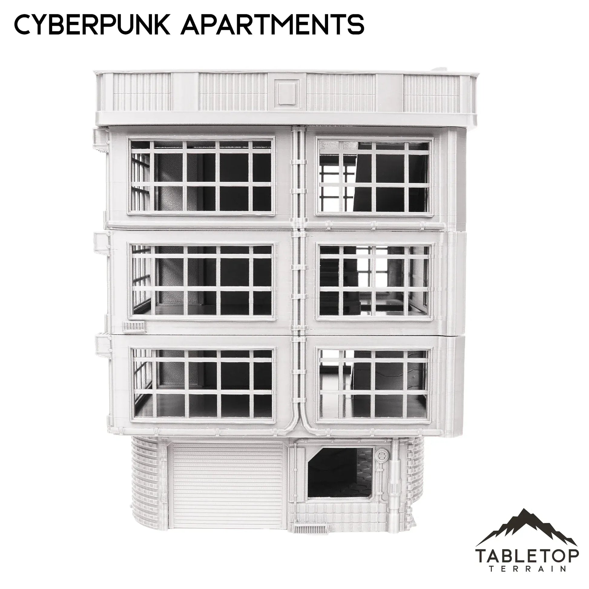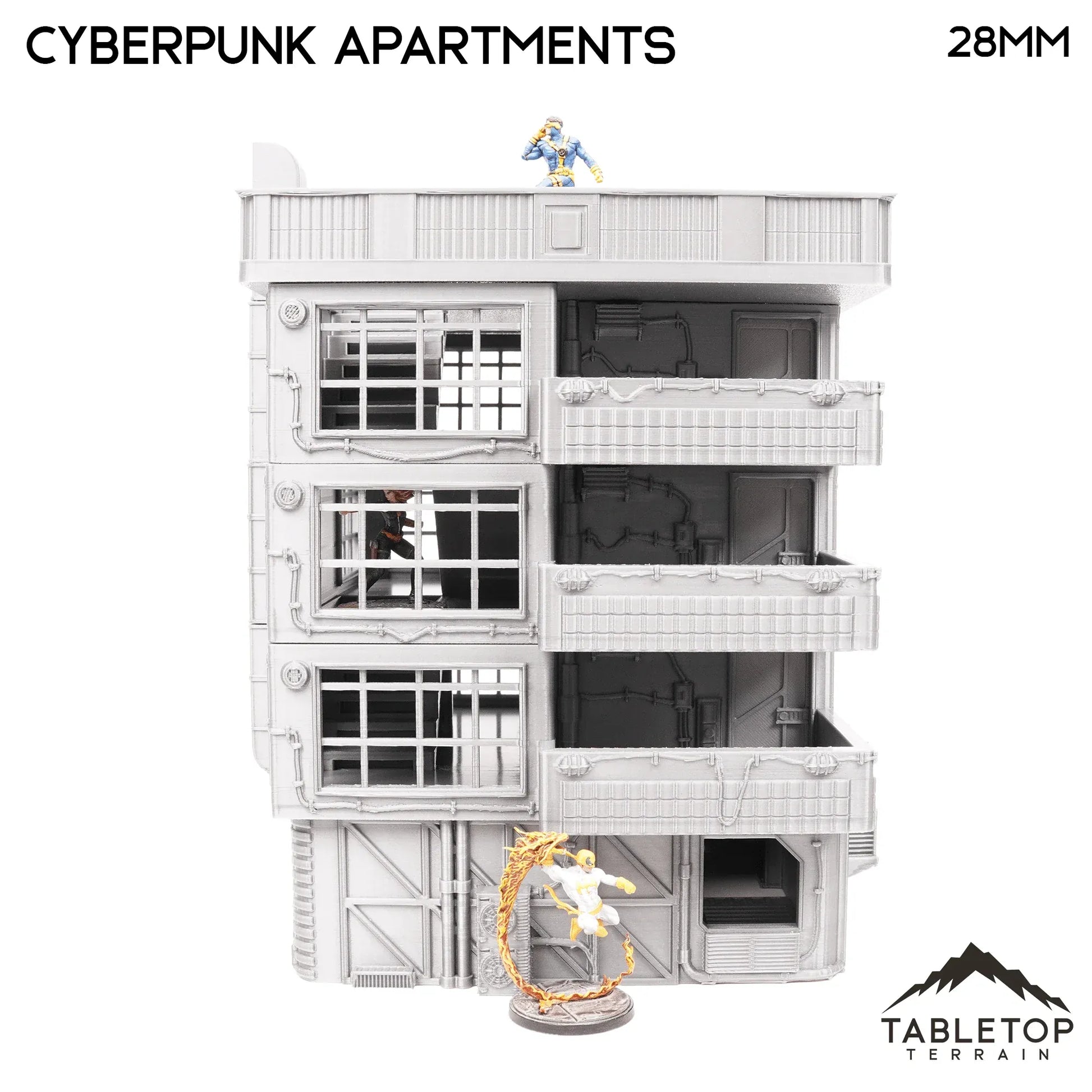 The Cyberpunk Apartments are a perfect addition for your Sci-Fi themed tabletop. The Apartments come with 3 upper floors, all with floors. The Apartments are available in 28mm, 20mm and 15mm scale. This building makes a great addition to a futuristic tabletop for games such as Stargrave or Cyberpunk Red.