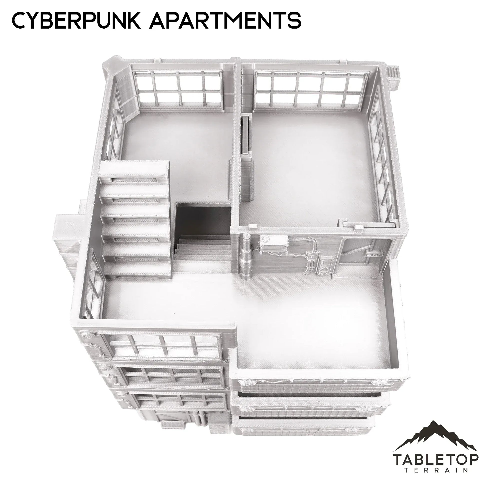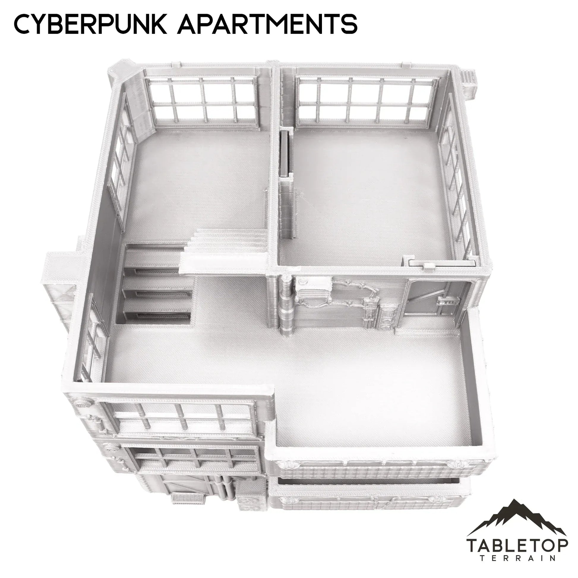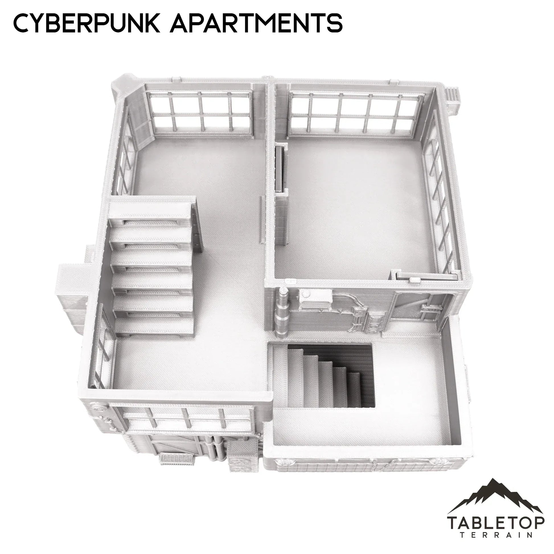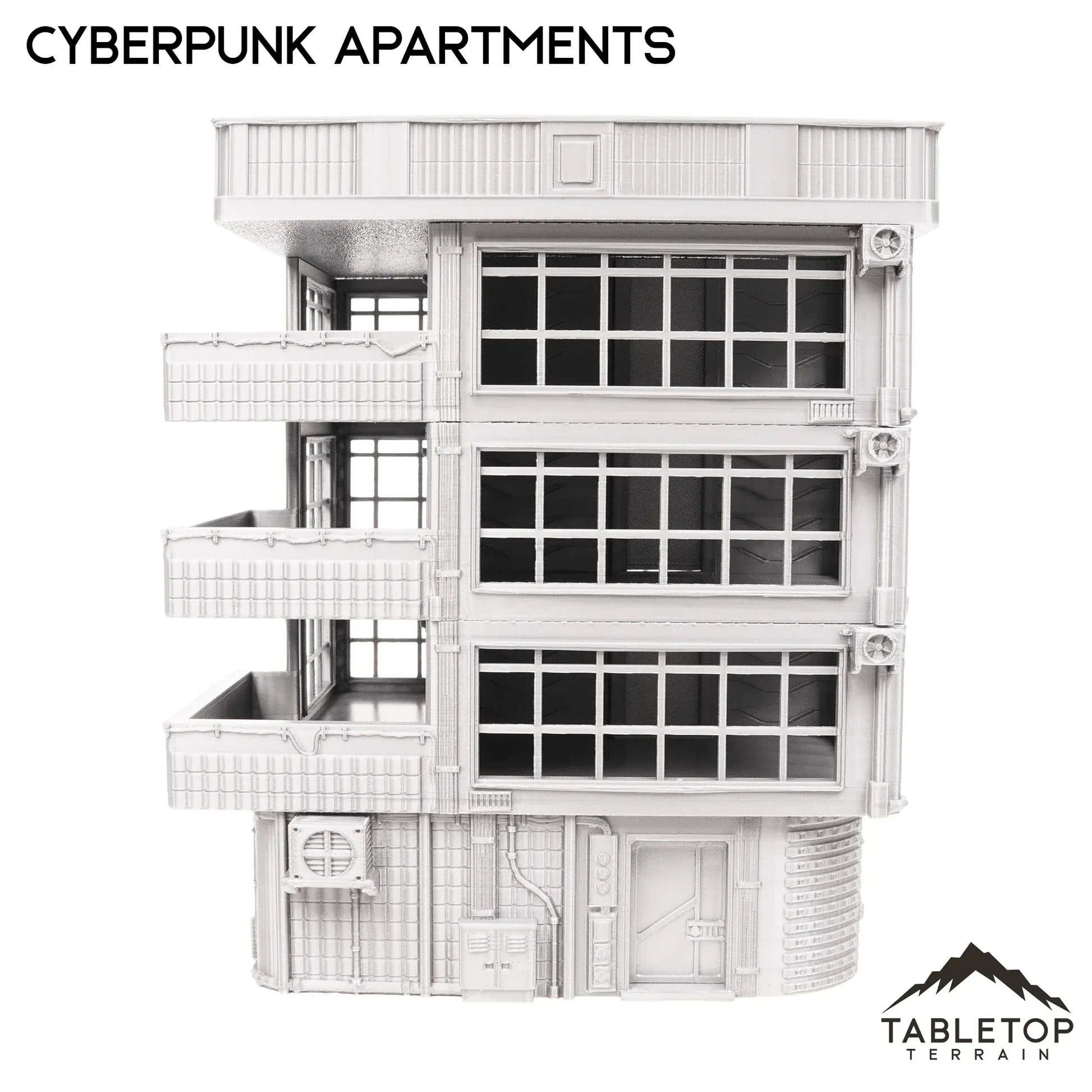 The Cyberpunk Apartments are a perfect addition for your Sci-Fi themed tabletop. The Apartments come with 3 upper floors, all with floors. The Apartments are available in 28mm, 20mm and 15mm scale. This building makes a great addition to a futuristic tabletop for games such as Stargrave or Cyberpunk Red.
