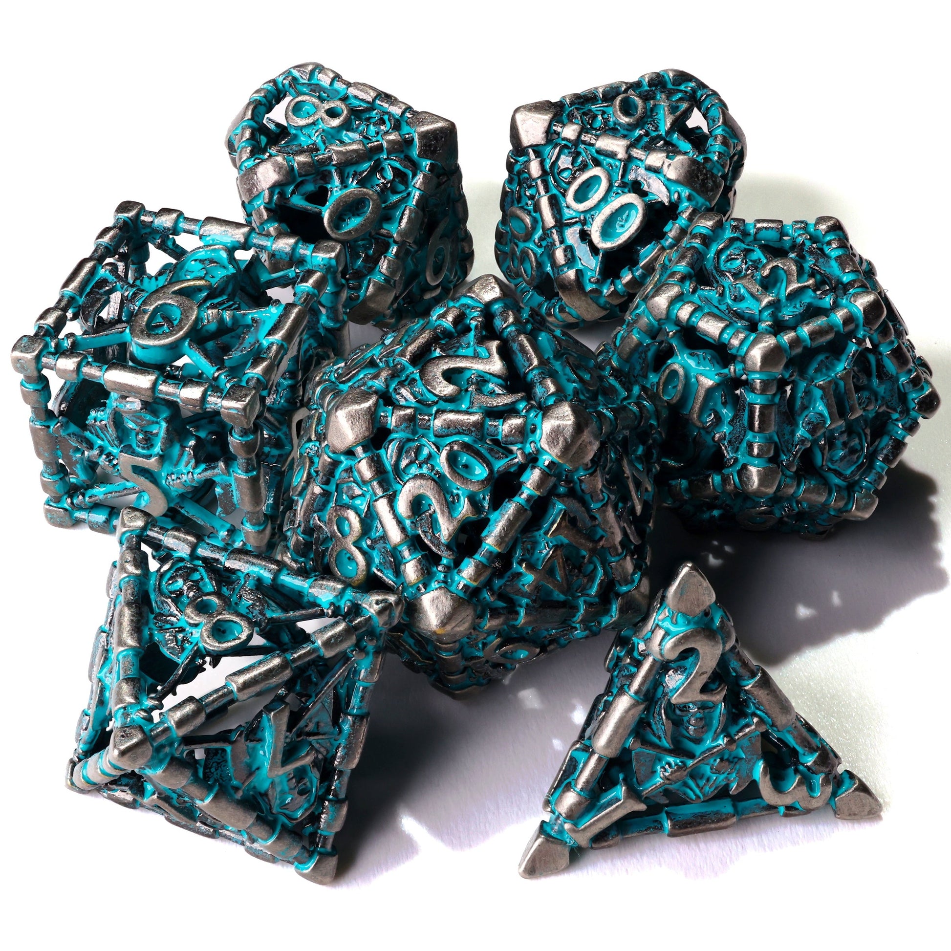Grim Reaper Teal Glow Metal RPG Dice Set - 7 Pieces