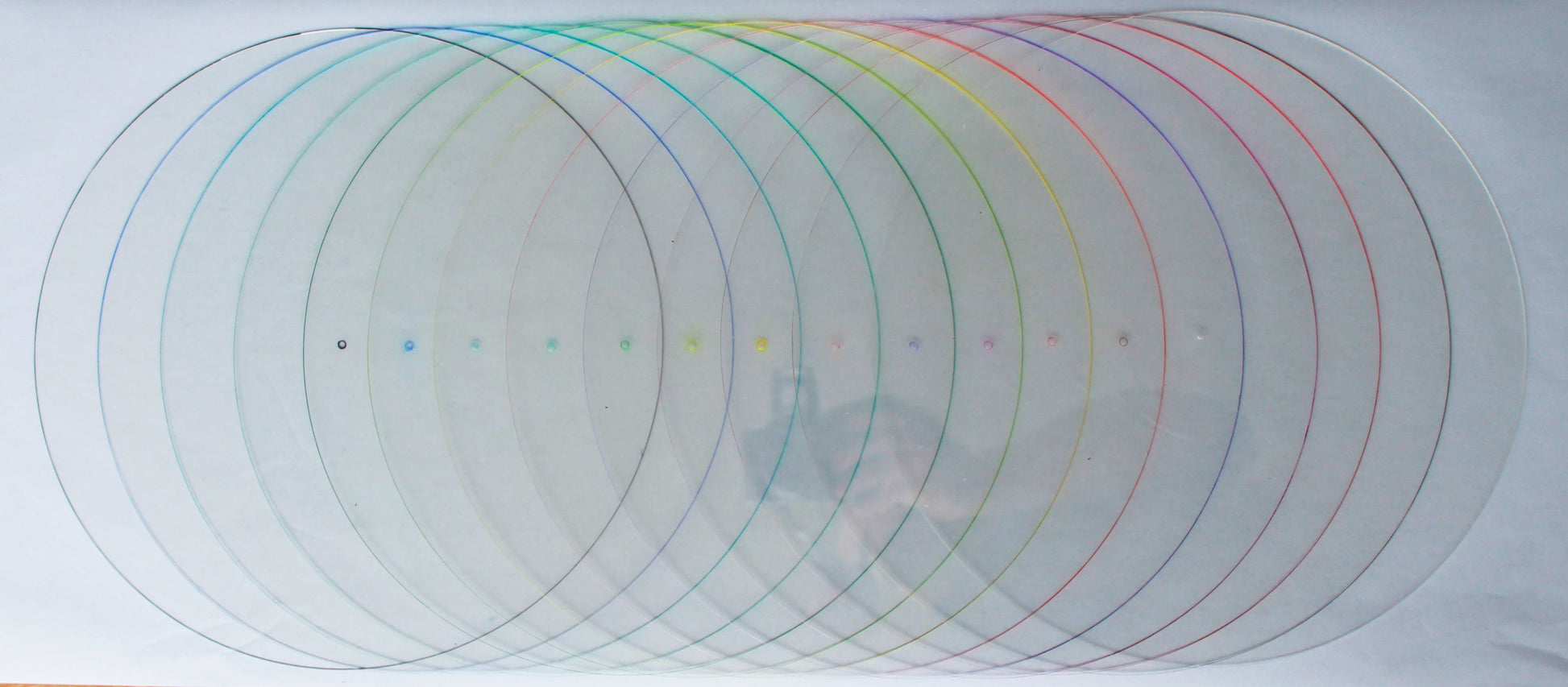 These also have a faint 2" diameter etch around the center, and the scratch guard is cut to allow you to chose to leave it on the center section only if you want.