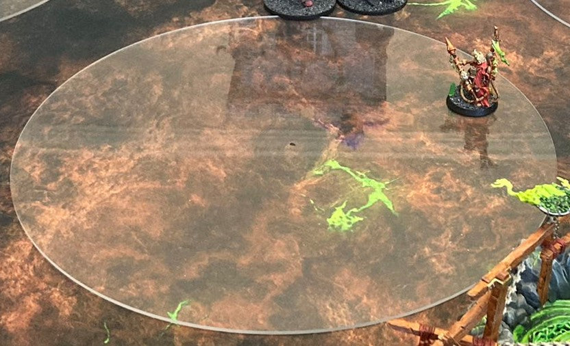 Optical grade acrylic provides full transparency while playing and doesn't cover up the beautiful battle mats that are being used or break immersion, and won't yellow or change color over time.