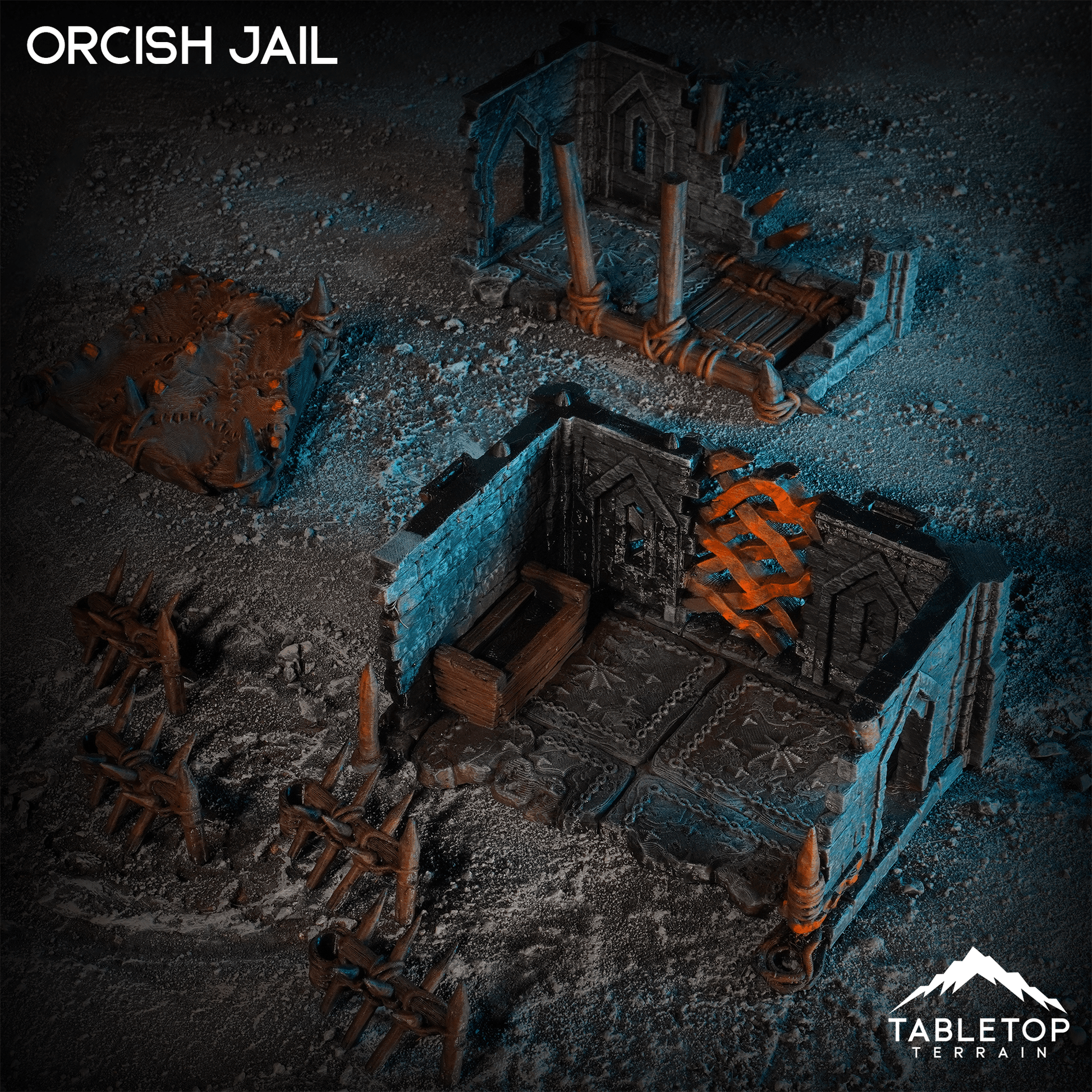 This decrepit jail is a tall structure with sightlines and doorways for engaging gameplay. The inside of the model is detailed and textured, etched with crumbling stone and the remains of those who fought before. This Orcish Jail is made for fantasy tabletop games, but can work for any genre.